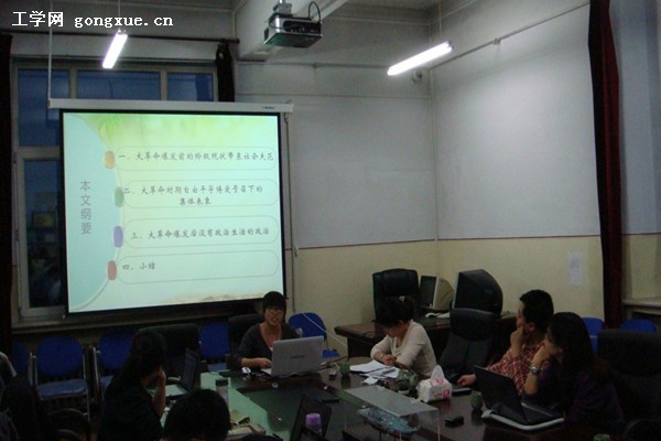 主报告范冬敏同学的报告题目是《培育自由精神的社会土壤――析<旧制度与大革命>的社会秩序》,分析了大革命爆发前的阶级现状导致的社会失范,精英阶层、贵族阶级和资产阶级产生对立和隔离,多元精英开始形成。在这种情况下,农民逃亡到城市,资产阶级的地位或高或低,而文人知识分子作为政治力量对国家政治毫无经验,只能借助于口号和呐喊,却成为全国推崇的力量。各阶级分裂后出现小团体,形成同构整体,但是无法组织力量约束政府。阶级之间由于失去社会价值的共识从而产生明显分歧,各阶级缺少相互合作,小团体的愤怒导致抗议的产生,形成的社会局面是与国家集权化有关的动态过程。在这种情况下,贵族与农民之间出现断裂,贵族的军队被改造,贵族和精英之间也出现断裂,平民精英被拉拢,官僚精英和民众的关系也被切断,社会呈现原子化的状态,产生集体行动的概率降低,对国家制度的依赖增强,垄断化和集中化加强。这样所产生的后果是,地方问题只能由中央解决,一切都是政府的责任。社会上每个人的地位都在动摇,习惯被打破,民众不知道听命于谁,毛细血管式的政权与政府虚弱,权力衰弱,人民不再信任政府,贵族、资产阶级、民众互相敌对,但是却共同抨击政府。人们不知道如何面对这种现实,所以决定寻找共同体。