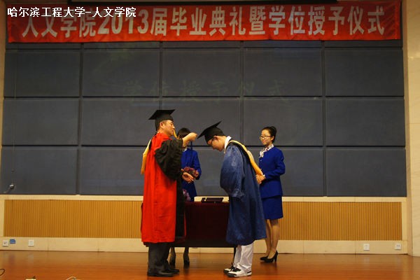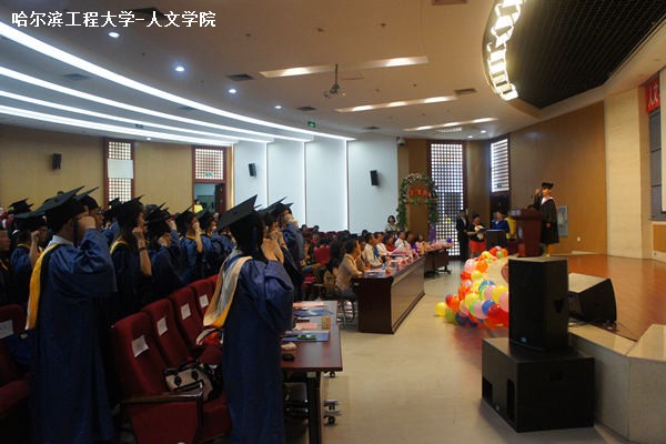 由2013届本科毕业生马逢艺带领所有毕业生进行诚信宣誓,他们承诺将秉承“大工至善,大学至真”的校训和“忠诚、坚韧、团结、创新”的校风,继续弘扬军工传统和勤勉奋进之志。