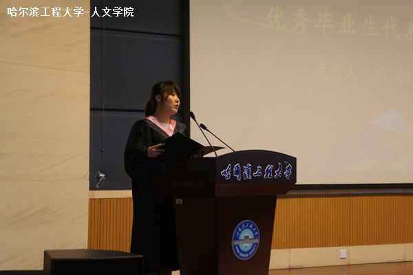 优秀毕业生代表史倩、刘�同学进行发言。