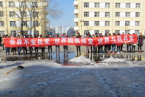 3月21日下午1时整,由人文学院社会学系主办,人文学院团委、学生会及星火志愿服务队共同发起组织的“义务扫雪活动”于奥列霍夫广场拉开帷幕。人文学院党委书记王惠民、党委副书记杨国庆、副院长郑莉、社会学系主任刘军教授及社会学系全体教师、2011、2012、2013级的全体本科生参加此次扫雪活动。