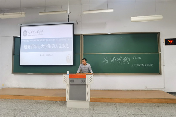 (宣传中心记者团记者 谢梦璇、钟栎泳报道)4月27日下午4时,由万博max体育app下载主办的“人文思政讲座”第八期讲座于主楼N301教室如期举行。本次讲座以建党百年与大学生的人生规划为主题,人文学院学工办主任、辅导员董春辉担任主讲人,人文学院党委副书记曹景杰,辅导员刘文璟,法学教师罗猛以及社会学教师殷亚迪、侯博文出席讲座,2018级全体本科生参加此次讲座。
