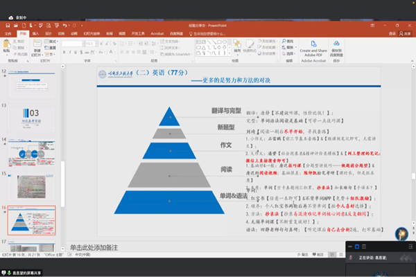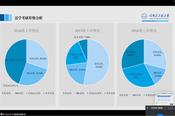 经验分享结束后,法学系教工党支部书记刘沫茹进行了总结。她指出,疫情之下,考研竞争日趋激烈,一定要结合形势的变化和自己实际情况合理设定目标。考研还是一个漫长枯燥的旅程,其间可能会心态崩溃、自我怀疑,所以既要全力以赴也要适时调整。无论考研成功与否,准备考试的过程都是对自己意志品格和专业能力的巨大锻炼。学习的成果并不仅仅体现在考试的分数,为自己的人生目标去积极努力,一定能够得到更大的成长。