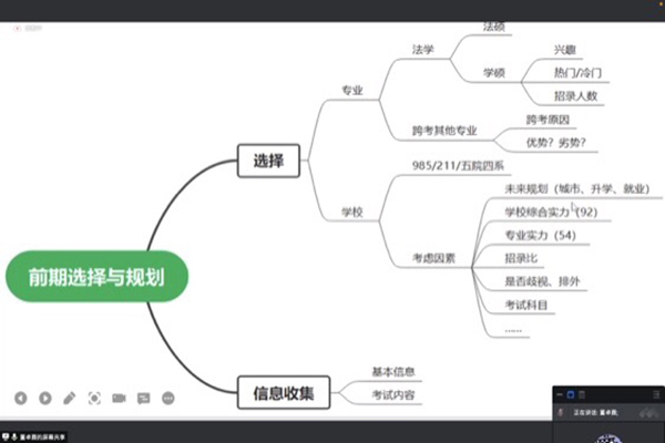 董卓霖:往年的“冷门专业”在近两年有了回暖的趋势,所以在专业选择上要更放眼于自己的兴趣,关注目标学校的招录人数,更好地发挥自身优势。如果打算跨考,要真正清楚自己跨考另一门专业的动机,切勿因为法学考研难度相对较高就转而选择跨专业考研。初试前的信息搜集非常关键,要在目标学校的研究生招生官网上确认参考书目与往年的分数线。