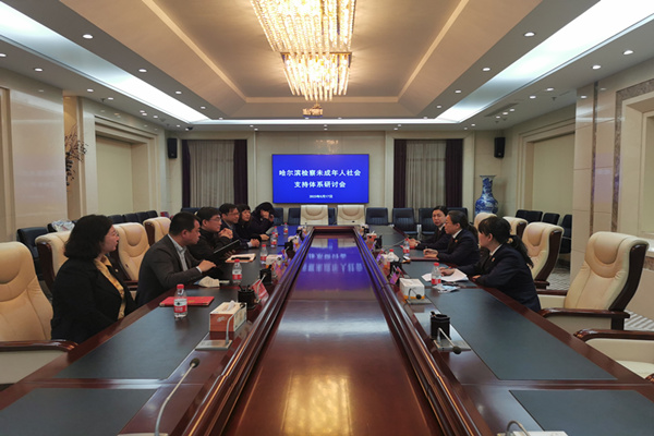 与会全体人员参观了哈尔滨市人民检察院青少年法治教育基地;共同参与了未成年人社会支持体系建设研讨会。哈尔滨市人民检察院专职委员王春艳对检校合作开展未成年人司法社会工作的愿景发表讲话,他表示希望通过双方合作,促进未成年人司法实践与法学、社会学理论研究深度融合,强化未成年人司法保护,完善专业化与社会化相结合的保护体系,共同构建具有我市特色的未成年人社会化支持体系。