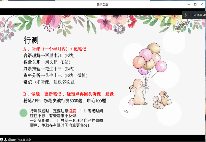 为帮助同学们提前做好未来就业发展规划,对公职类就业的考公政策、内容及备考过程有更加清晰的认识和了解,提升考试竞争力,2023年6月18日晚7时,人文学院法学党支部于腾讯会议平台举办考公经验线上分享会。本次分享会由法学党支部书记刘沫茹老师组织,邀请到2020级法学研究生郭思蕊和谢明月两位同学以及法渡培训机构的李老师,通过线上方式与有考公计划的在校法学生进行充分交流。