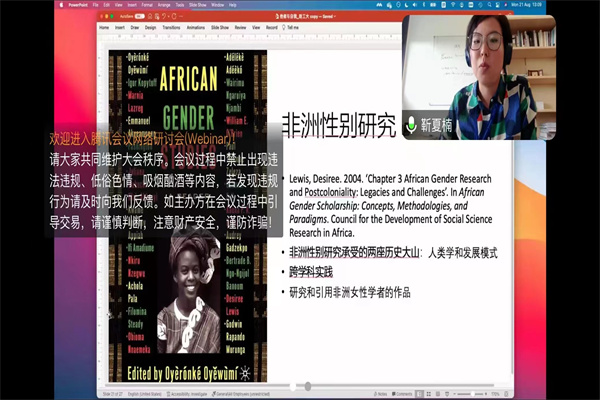 在讲座伊始,靳夏楠开始介绍随着中国区域研究学科的兴起与发展,越来越多的学者有机会和能力去国家和当地官员和人民进行直接的交流,引出了本次讲坛的相关主题,之后,靳夏楠通过在卢旺达一年的研究经历和当地深入的田野研究,分析出了在当地女性家务劳动与阶级关系的问题,阶级与性别的交叉,然后,靳夏楠向大家表示,田野计划也收到了家政工Odette的影响,并在此的基础上,阐述了绘画方式的三种意义,分别是认识论、方法论和政治意义,随后,靳夏楠讲解了她在卢旺达进行了非洲性别研究,指出了非洲性别研究承受的两座历史大山:人类学和发展模式跨学科实践,最后,靳夏楠回答了在田野工作中所遇到的困惑与难题,以及知识生产的政治和地理位置的相关问题。