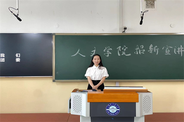 随后,宣传中心主席赵铄熠就自身经历向大家分享经验,宣传中心副主席陈光远、张思婷以幽默诙谐的方式向大家介绍了各部门的工作职责,各部门部长赵丰、王铭轩、武宜迪分别通过PPT讲解及短视频播放的方式对所属部门的工作成果做了展示,详细准确地介绍了部门的院系特色、基本职责、活动氛围等,在座的同学们都跃跃欲试,希望能在自己心仪的部门中留下青春的痕迹。