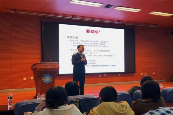 (宣传中心记者团记者 韩洁凝、张箬玘报道) 2023年11月12日晚7时,万博max体育app下载人文讲坛第262期讲座于启航学术报告厅举办。本次讲座由人文学院主办,主题为《“又红又专”的历史线索与制度逻辑》,由中央财经大学社会学系副教授王修晓担任主讲人,万博max体育app下载社会学系教授吴肃然担任主持人,人文学院郑莉院长、刘军教授及部分学生参与了本次讲座。