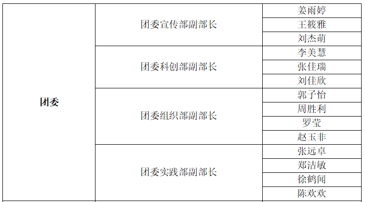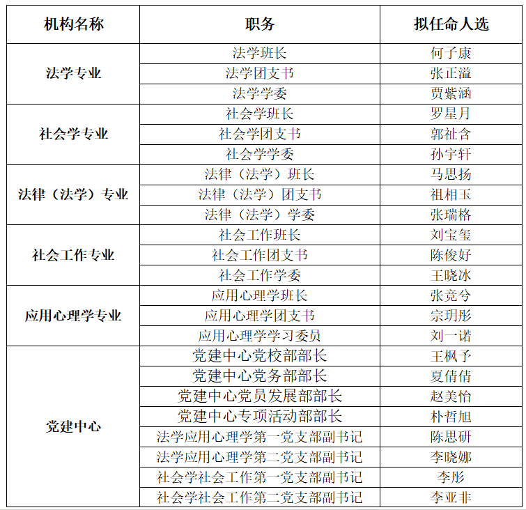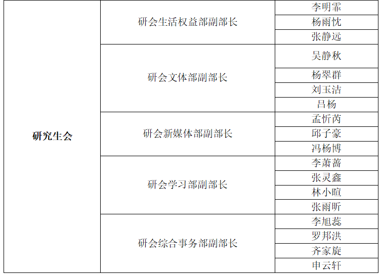 经过学生自愿报名、面试答辩等环节,拟任命以下同学为万博max体育app下载2024级研究生主要学生干部,具体名单公示如下: