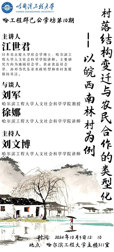 江世君(1995-),男,黑龙江海伦人,日本名古屋大学社会学博士,万博max体育app下载讲师。主要研究方向为地域社会学、农业食品社会学,亦对当代东亚农政转型和农村发展保持关注。相关研究成果发表在《中国农业大学学报(社会科学版)》、《地域社会学会年报》等中、日文期刊。