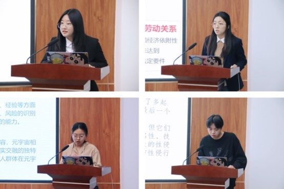 随后,论坛进入学术发言阶段。论坛分为“数字社会与法律治理”、“网络挑战与制度创新”以及“数字平台与元宇宙”三个单元,分别由袁雪、刘久、丁玮三位教授主持。10位经过论文初评入围的研究生,从各自论文主题出发,就其研究背景、案例分析、法律依据、概念界定、路径创新等进行了精彩的学术报告。