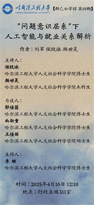 面对人工智能(AI)对就业影响,有学者认为人工智能(AI)会带来大量失业,有学者却认为 AI会促进就业。如何理解其中是非?我们就该争议深入剖析,指出这源于学者不同问题意识。问题意识在日常生活、学术研究和社会治理中至关重要。首先,本文梳理出多种问题意识观,包括“意识到问题” “关切到现实”与“反思与批判”,发现学者通常固化地理解“问题意识”,而没有认识其体系。其次,本文认为,问题意识是蕴含怀疑与追问、反思性批判、反思之反思三层意识的体系,本文称之为“问题意识层系”,并重点关注“发问”意识,梳理出多种发问方式,其中本真式发问最艰深。再次,基于问题意识层系分析关于“AI 与就业”的相反观点:不同学者缺乏不同层级的问题意识,未意识到更高层次问题意识。最后,本文指出:应坚守“我思言行故我在”,在行动中“解决”问题;预防意识很重要,但因思维局限,人们缺乏预防意识且难充盈,因而难免出现问题。报告人还将呈现论文从选题、撰写到修改的历程,阐述所遇问题及其破解和完善过程。旨在通过这一分享,为参会的同学提供深入思考的契机,希望本研究促进人研习沉思式和本真式发问。