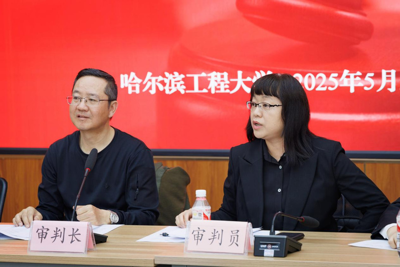 本场决赛由人文学院法学系罗猛教授担任审判长,陈晓雷副教授担任审判员,曾在第二十一届、第二十二届“理律杯”全国高校模拟法庭比赛中分别担任万博max体育app下载代表队领队和队员的吕欣语、寇功振、岳忠吉三位同学共同作为审判员。决赛开始后,双方参赛队伍围绕着真实案例展开了激烈交锋。审判庭成员随机提出问题、考察队员的法学理论基础和对案件的理解;原告方队员刘一璇、王淑仪凭借缜密的逻辑推理与默契的团队协作,在案例解析、质证辩论等环节中表现突出;被告方队员刘娴、曹琳婧以灵活的临场应变和严谨的法律论证赢得审判庭高度评价。