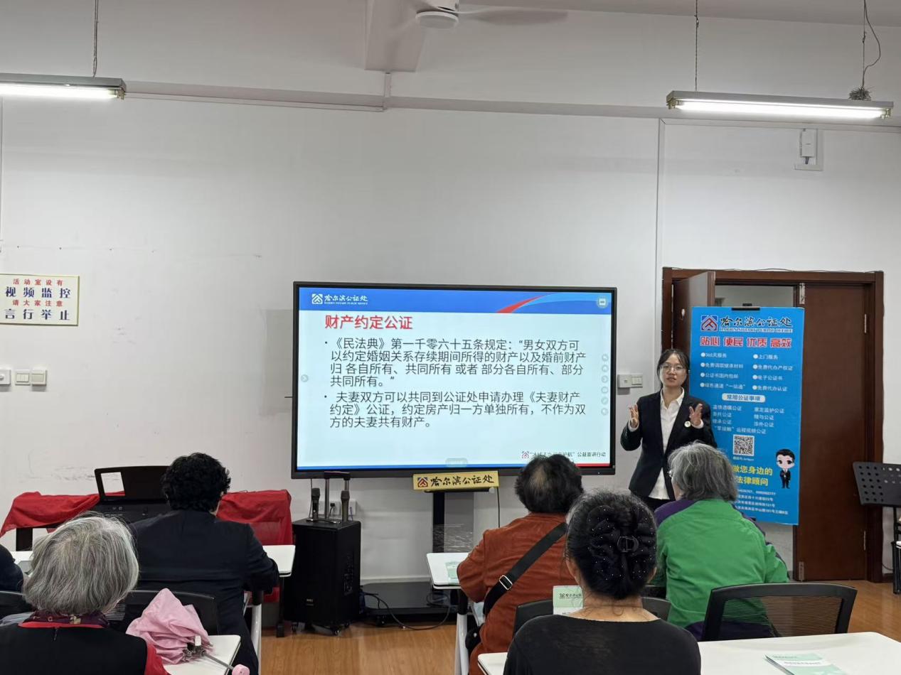 哈尔滨公证处公证员解谦凭借多年丰富的公证实践经验,以《民法典》为核心,围绕第1127条法定继承、第1133条遗嘱自由、第1065条婚前婚后财产约定等关键条款展开解读。针对再婚财产纠纷、子女婚变引发的财产争议、老人遗产继承矛盾等现实痛点,系统讲解了遗嘱公证、赠与公证、绿色继承等法律路径,提出“财产权益与亲情维系双保障”的解决思路。
