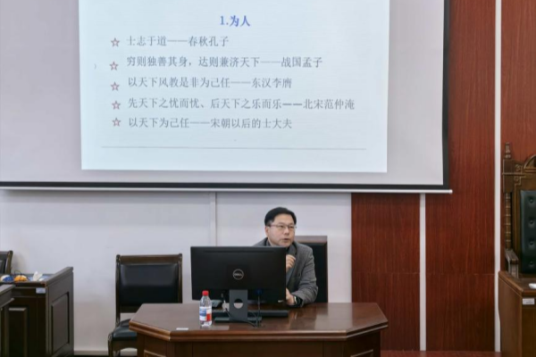 郝龙从国际背景和国家层面出发,解读中国发展正面临着前所未有的机遇和挑战。他指出,在应对百年未有之大变局的过程中,要认清“变”与“不变”这对哲学问题。这里的“变”是指全球视野下的大发展与大调整,是全球化进程的百年之变;而“不变”的则是“中国共产党的领导”及其“初心和使命”。作为共产党员,我们一定要不忘初心,牢记使命,保持自身先进性与文化自信,相信党中央领导核心和最广大人民的集体智慧。