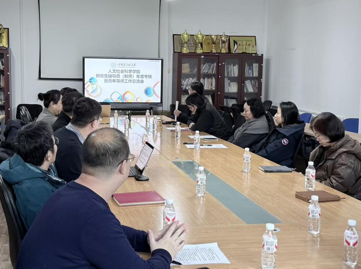 2025年12月15日下午2时30分,万博max体育app下载2025年度研究生辅导员(教师)考核暨青年导师工作交流会在主楼302教室召开。学院党委书记崔彬,党委副书记吴际,法学系基层学术组织负责人袁雪,社会学系基层学术组织负责人黄振羽,教务办公室主任陈玉清,学生工作办公室主任李瑶出席会议,校党委研究生工作部李优仁列席会议,全体研究生辅导员(教师)参加会议,学院党委副书记吴际主持会议。