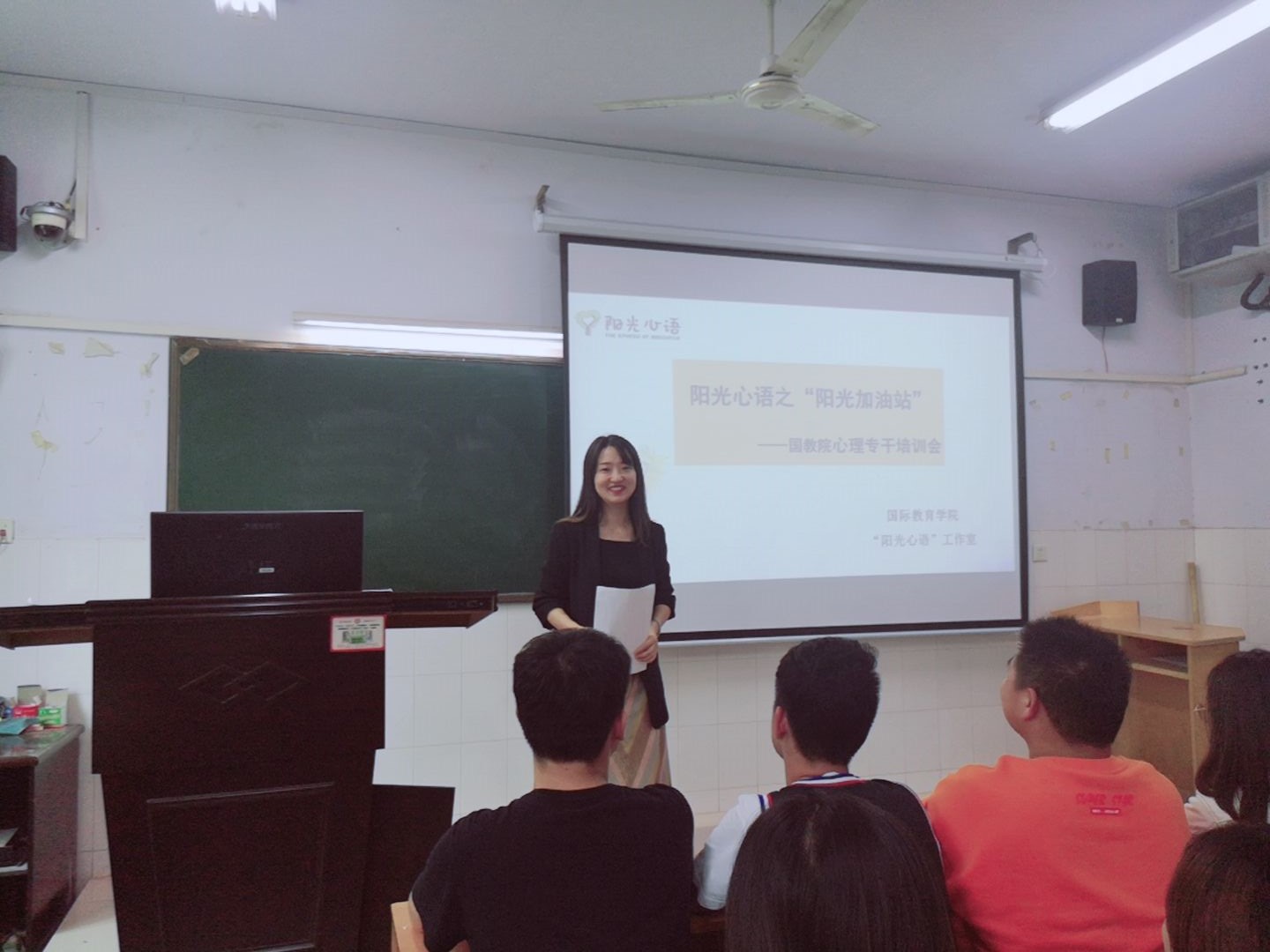 为进一步排查出学生心理问题,bat365在线中国官网登录入口于2019年9月19日下午一点半在A207教室开展了--阳光心语之“阳光加油站”心理培训课程,本次会议由心理专干丁玮老师主讲,19级代班长和各班班委参加。