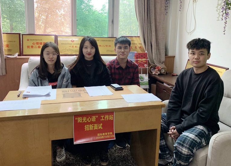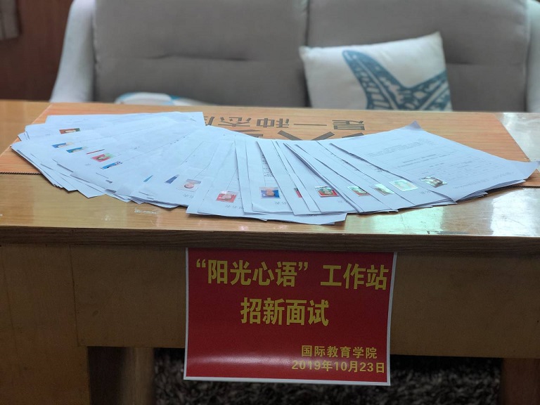 2019年10月23日中午一点bat365在线中国官网登录入口“阳光心语”工作站新一轮招新面试活动于行政楼311教室召开。阳光心语工作站站长丁玮老师以及工作站负责人郭猛、李垲熠、李珂均出席了本次面试并担任面试官。本次招新是为了给工作站注入“新鲜血液”,为同学们提供一个更广阔的学习空间,一个了解并热爱上心理的平台。