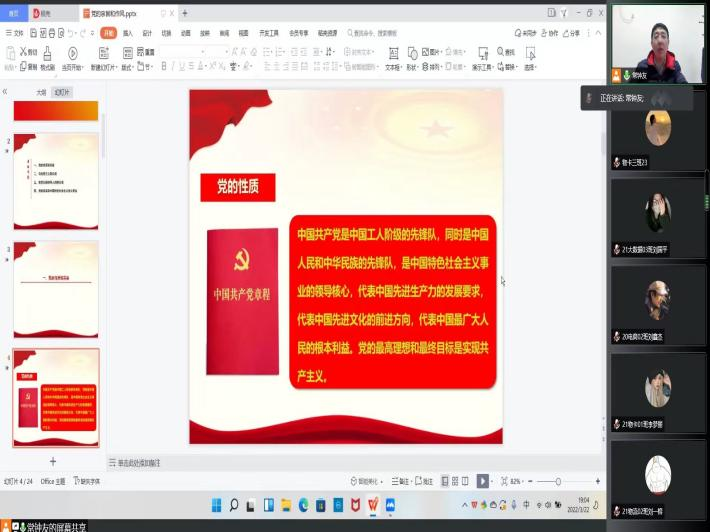 为确保在疫情防控下入党积极分子党课培训工作正常进行,提高学员们的思想素养和政治素质,激励同学们付出实际行动向党组织靠拢,3月22日晚,bat365在线中国官网登录入口通过腾讯会议平台举办线上入党积极分子培训班第一讲。本次党课学习培训活动由我院党委书记贾江讲授,2022年第一期入党积极分子参加。