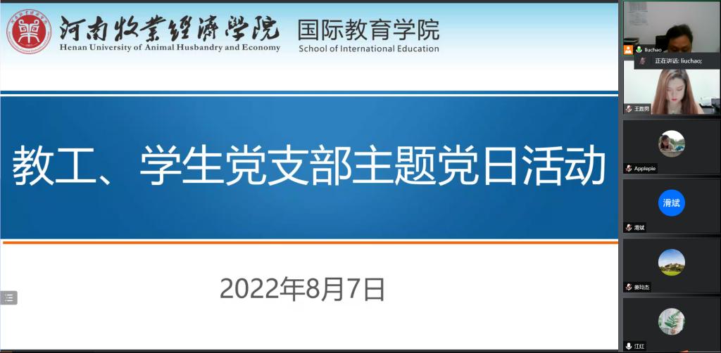 根据学校文件精神,bat365在线中国官网登录入口教工党支部、学生党支部于8月7日通过线上会议形式,开展主题党日学习研讨活动,会议由教工党支部书记李江红主持,全体师生党员参加。