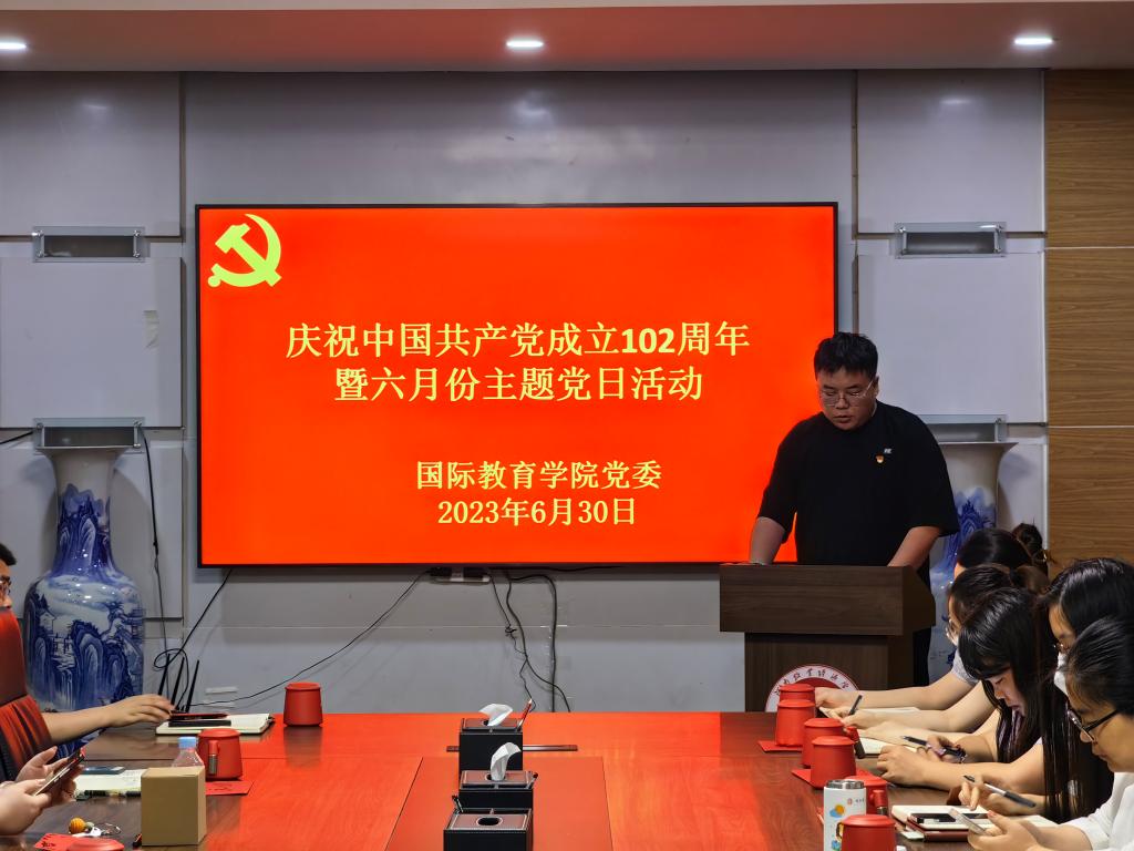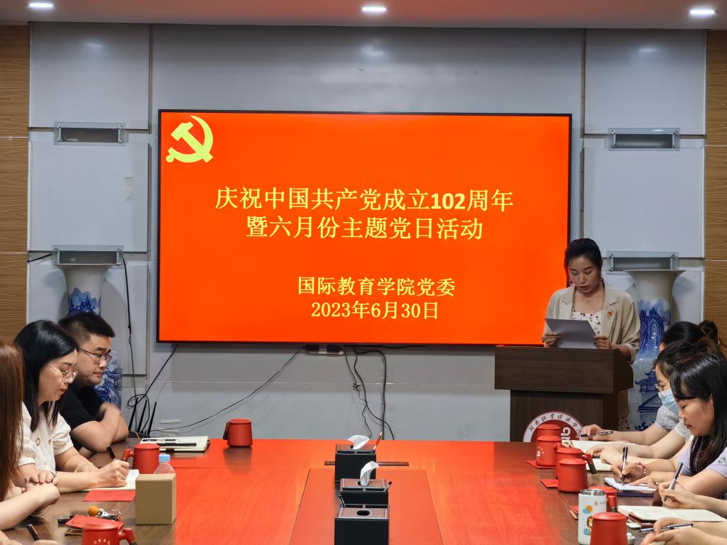 为庆祝中国共产党成立102周年,进一步弘扬伟大建党精神,持续提高基层党组织战斗力、凝聚力、向心力,激发广大教师党员干事创业的信心和决心,6月30日下午,bat365在线中国官网登录入口在教学办公楼113会议室举行庆祝中国共产党成立102周年主题党日活动。学院全体教工党员参加活动。活动由教工党员、学生第三党支部书记侯思琦主持。