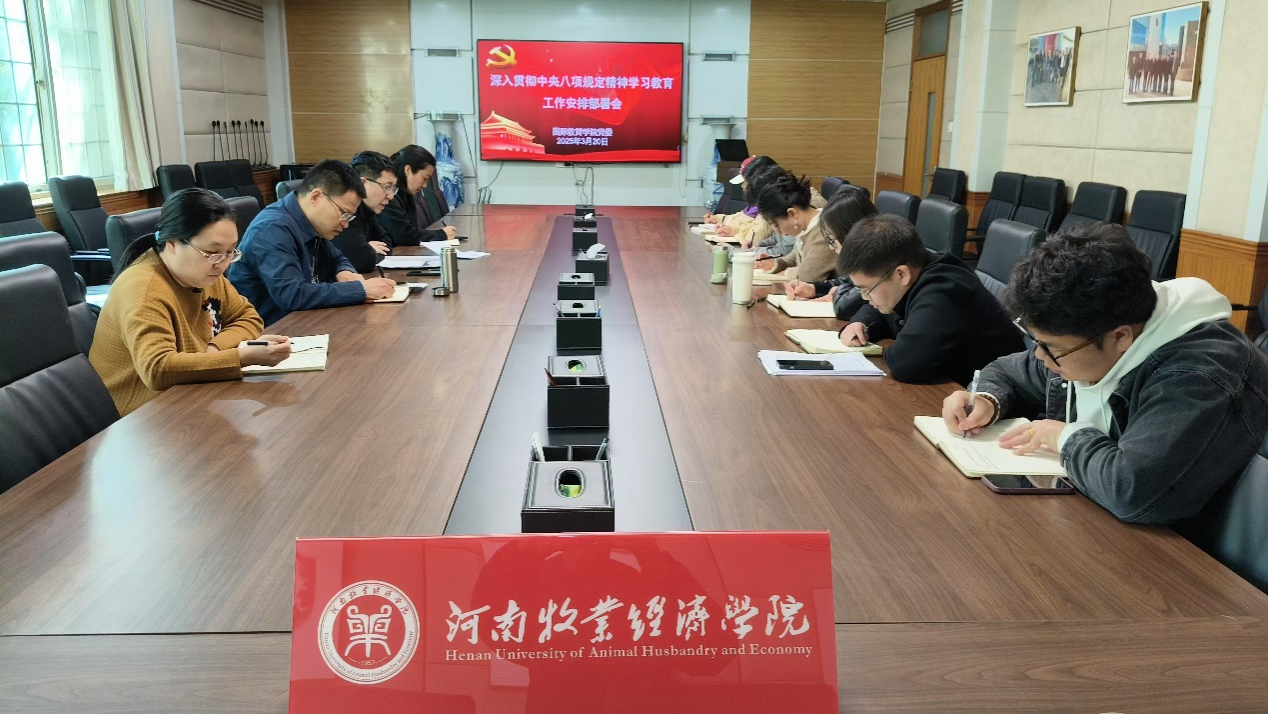 会上,按照 第一议题制度要求,贾江领学了习近平总书记关于加强党的作风建设的重要论述;解读了学校《关于印发<关于在全校党员中开展深入贯彻中央八项规定精神学习教育的工作方案>的通知》(校党〔202524号)文件精神,并就抓实学习研讨、问题查摆、集中整治、开门教育等工作进行了具体安排。