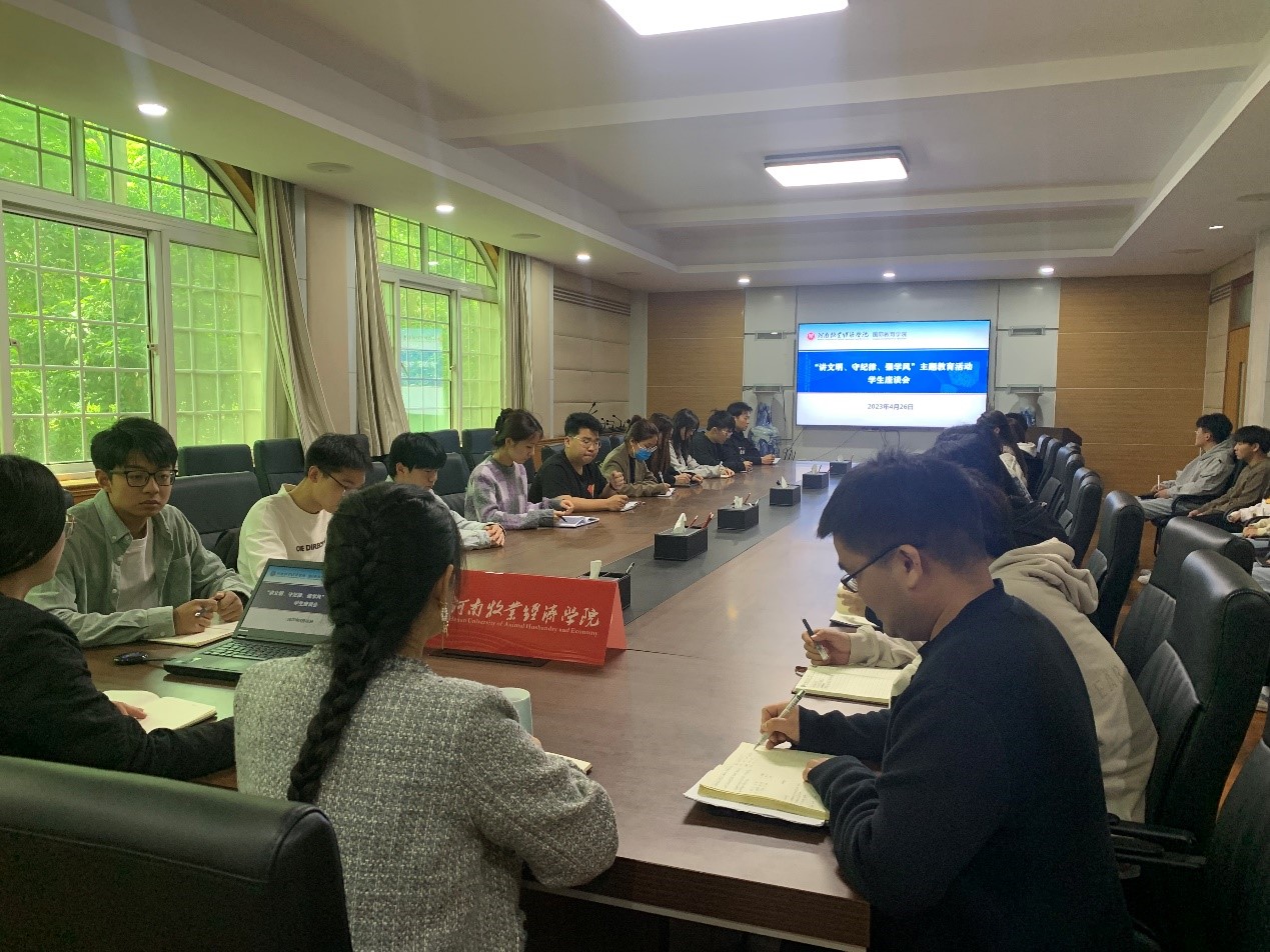 为不断强化学风建设实效,助力学生成长成才,4月26日中午,bat365在线中国官网登录入口在教学办公楼113会议室召开学风建设学生干部代表座谈会。学院团委书记(学工办主任)张丽,团委副书记(学工办副主任)侯丁琳、何季霖及学院团学会、各班级主要学生干部代表参加会议。会议由何季霖主持。
