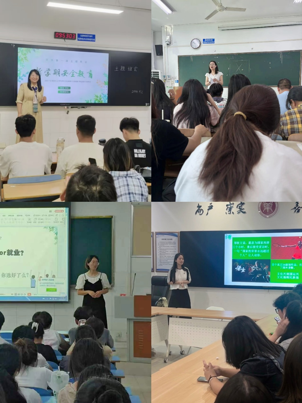 会上,各班辅导员或班主任结合本班学生特点,精心设计了一堂目标明确、内容丰富、形式多样的安全教育课程,内容涵盖国家安全、网络安全、防骗反诈、消防安全、财产安全、校园安全、交通安全、食品安全等几个方面。通过师生之间的互动问答、情景模拟、案例分析、视频观摩等方式,帮助学生更加深入地了解安全教育的重要性和具体的防范措施。