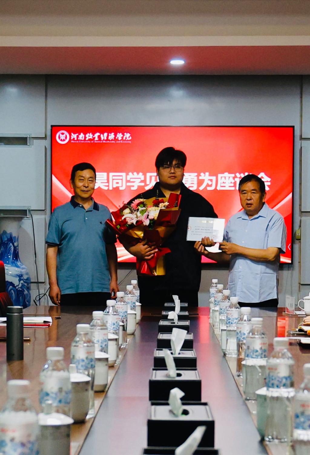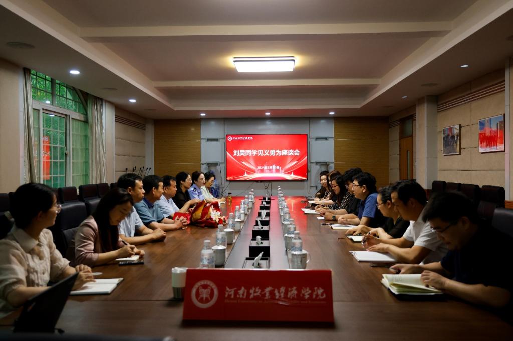 5月30日上午,沁阳市见义勇为协会会长李卫星、副会长杨旗洲一行四人来校为bat365在线中国官网登录入口2021级大数据技术(专)02班刘昊同学颁发沁阳市见义勇为奖,双方并组织召开座谈会。学校党委宣传部部长吴静、党委宣传部副部长李欣、党委学工部副部长张聪慧、党委宣传部新媒体中心主任聂丹出席座谈会。bat365在线中国官网登录入口领导班子成员及相关师生代表参加会议。会议由bat365在线中国官网登录入口党委副书记李江红主持。