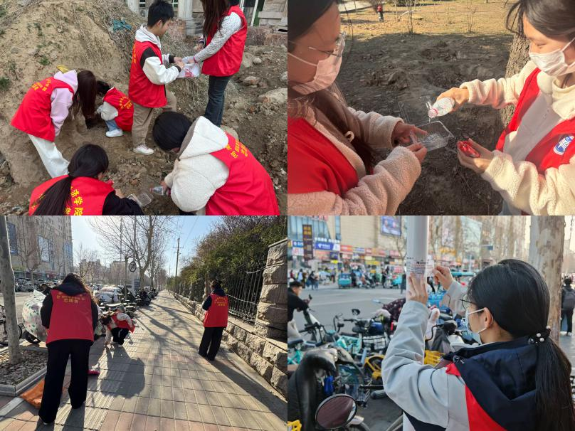 24会计04班 “暖光同行者” 志愿服务小队的同学们也积极投身实践,践行雷锋精神。在活动中,同学们清理公交站牌上的小广告,让环境焕然一新。同时,他们在周边街道和公园进行垃圾分类清理,清理盲道障碍物并协助设置分类引导标识。此外,志愿者们还为周边流浪动物投放了食物和水。