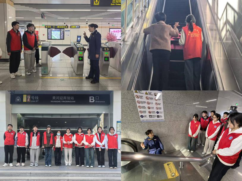 在惠济区地铁2号线,由24国教会计(专)03班王梓祎同学带领的15人 “微光雷锋队”,自3月起开展 “文明动脉”守护行动。活动当天,志愿者们早早到岗。在售票机和安检口,耐心帮乘客购票、指导安检;在早晚高峰时段,他们在站台维持秩序,引导排队、先下后上,遇到行动不便乘客,全程护送。