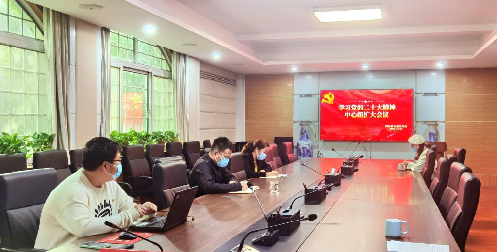 院长胡晓波、党委副书记李江红、副院长邓瑜,学生党支部书记侯丁琳、何季霖围绕学习党的二十大精神,结合自身学习体会,联系工作实际,在会上作了交流发言。大家一致表示,要坚定不移在思想上政治上行动上同以习近平同志为核心的党中央保持高度一致;要牢记为党育人、为国育才初心使命,全面贯彻党的教育方针,落实立德树人根本任务,做好学生成长的引路人、同路人、开路人,为培养德智体美劳全面发展的社会主义建设者和接班人贡献力量。