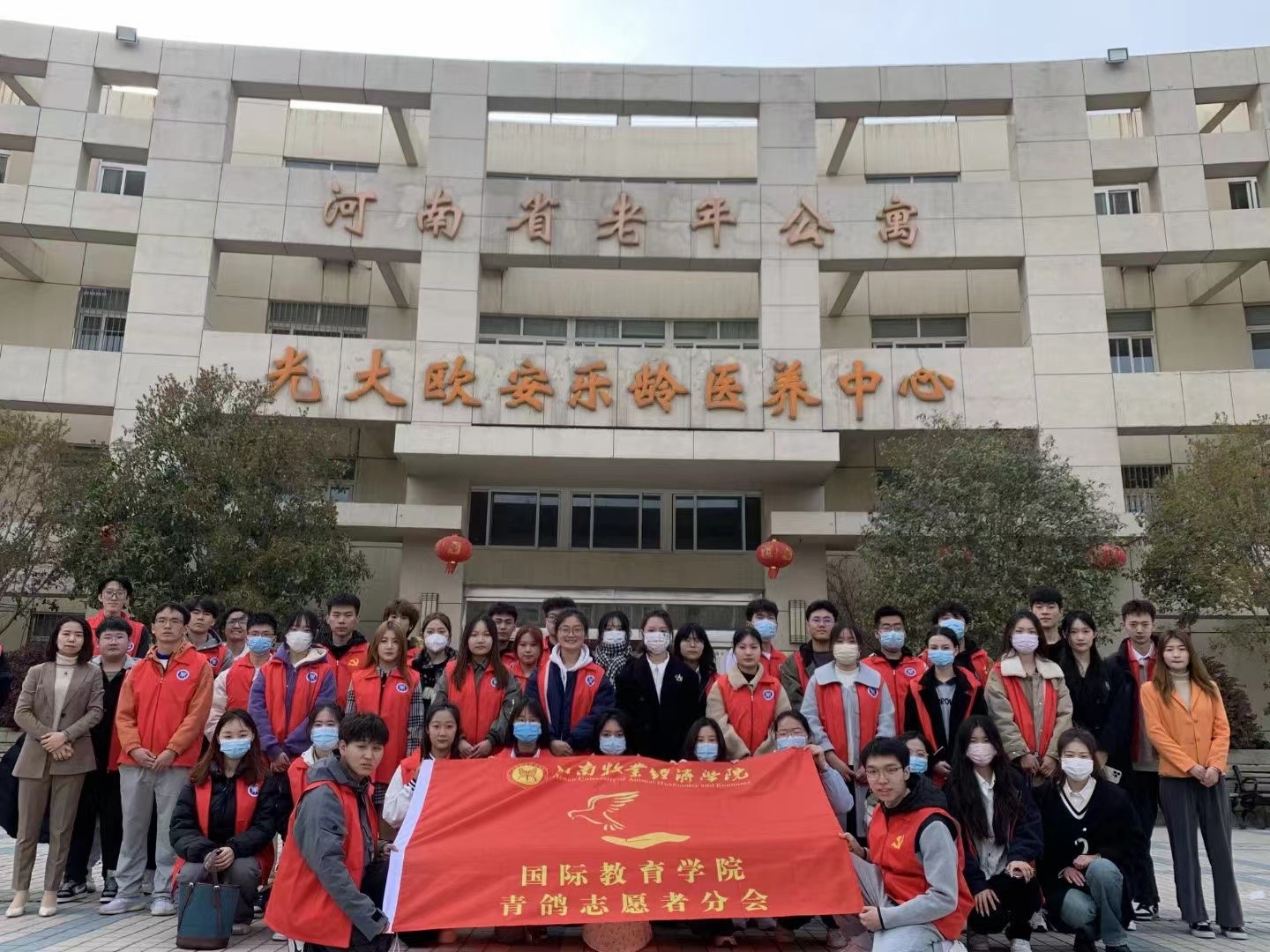 为引导广大青年学生传承中华优良传统,崇尚尊老、敬老、助老的新风,弘扬志愿服务精神,3月18日,bat365在线中国官网登录入口团学会生活权益部在河南省老年公寓开展了“爱驻夕阳,关爱老人”的志愿服务活动。bat365在线中国官网登录入口青鸽志愿者分会在全院范围内进行招募,组成了43人的志愿者队伍,大家怀着诚挚之心参与到活动中去,给予了老人呵护与关怀。