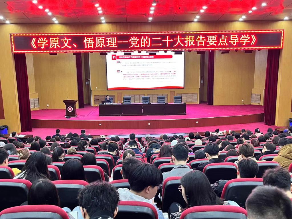 开班仪式后,作为学校党的二十大精神宣讲团成员,贾江以《学原文、悟原理——党的二十大报告要点导学》为题,做首场专题报告。他从党的二十大召开的基本情况入题,紧扣“七个聚焦”要求,围绕党的二十大主题、主要成果,过去五年的工作和新时代十年的伟大变革,马克思主义中国化时代化,新时代新征程中国共产党的使命任务、实施科教兴国战略、坚持党的全面领导和全面从严治党等方面,结合自身学习思考,对党的二十大精神进行了系统解读和深入阐释。宣讲报告主题鲜明、内容详实、脉络清晰,论述深刻,具有很强的针对性和指导性,为全院师生深入学习、准确把握、全面贯彻党的二十大精神提供了指导和帮助。