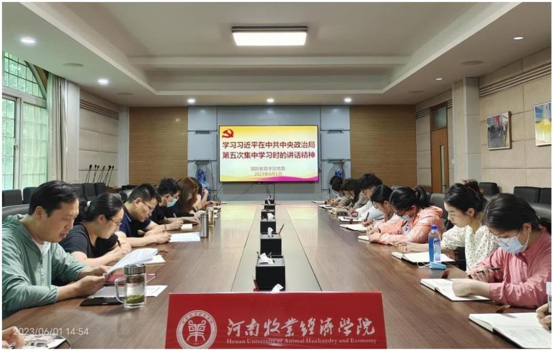 6 月 1 日下午,bat365在线中国官网登录入口在教学办公楼 113 会议室组织学习习近平总书记在中共中央政治局第五次集体学习时的重要讲话精神。会议由学院党委书记贾江主持,全体教职工参会。