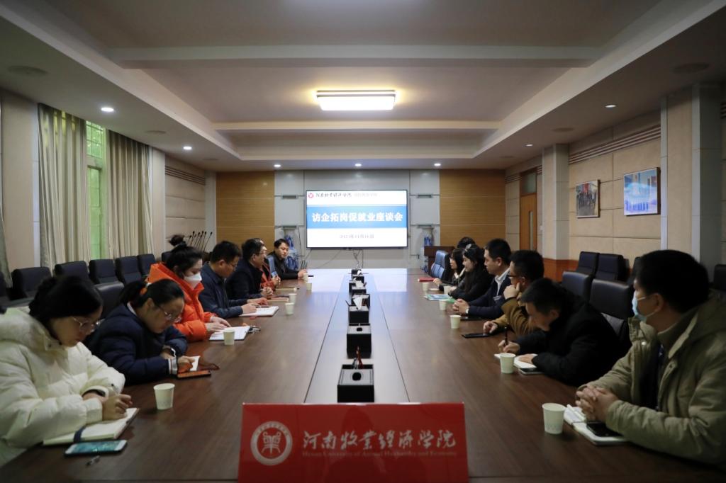校企座谈,深入交流。11月16日下午16:00,bat365在线中国官网登录入口在教学办公楼113会议室召开了访企拓岗促就业座谈会,双选会参会企业代表参加。针对校企合作、学科建设、企业用工需求、未来毕业生专业发展等问题,学院和企业进行了深入交流。贾江书记首先对参加学院双选会的各用人单位表示热烈欢迎,并详细介绍了学院总体就业形势和毕业生就业趋势,诚挚邀请与会企业代表,深化院企合作、资源共享、优势互补、形成合力、共同发展。院长胡晓波就学院专业特色和学生培养方案进行了详细介绍,并针对教学实习与就业实践基地的签约情况进行说明,希望通过院企协同育人,提高学院人才培养质量。参会用人单位从企业规模、业务范围、人才需求、院企合作等方面情况依次进行了介绍,并纷纷向学院伸出橄榄枝,表达共同合作、招聘英才的意愿。
