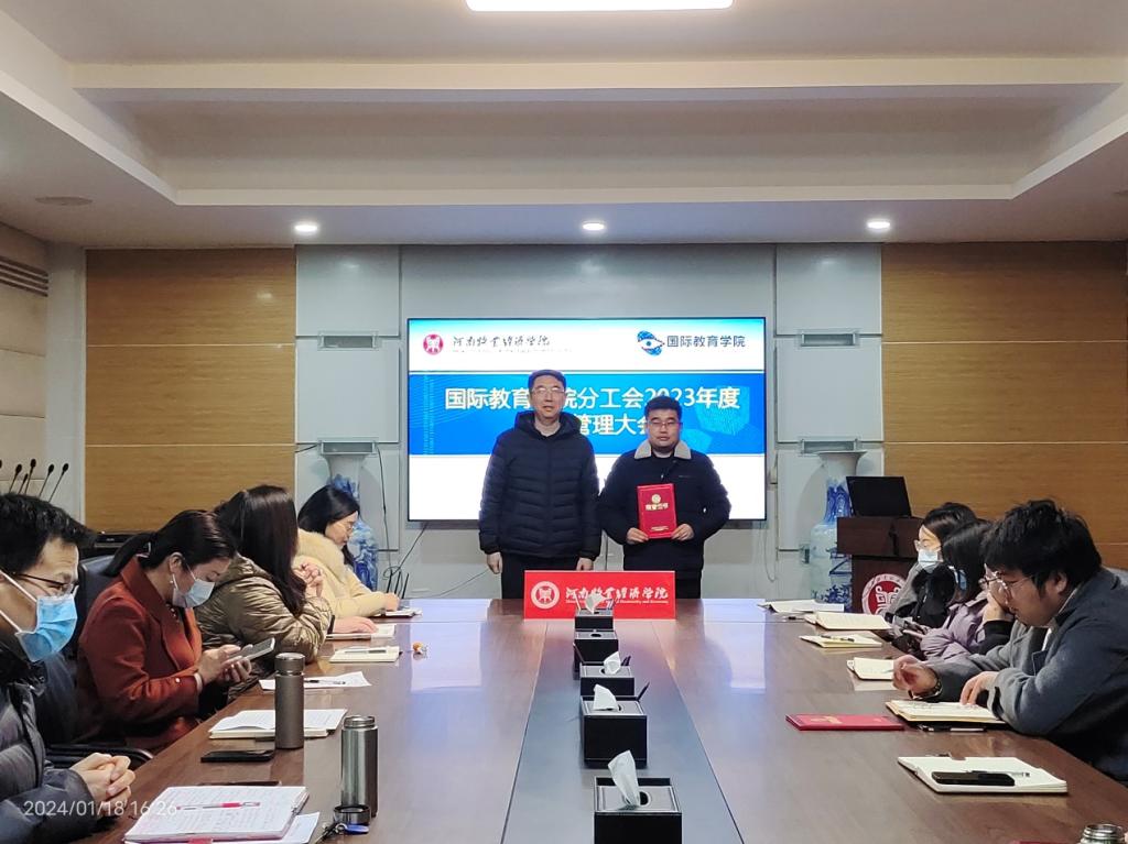 1月18日,bat365在线中国官网登录入口分工会在教学办公楼113会议室召开2023年度民主管理大会。学院领导班子和全体教职工参加了本次会议,会议由副院长邓瑜主持。