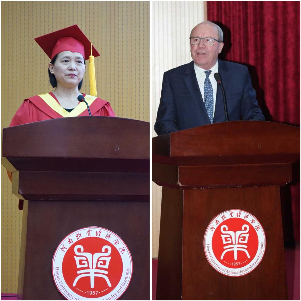 中方教师代表杨萌和澳方教师代表骆德明分别发言。他们向同学们顺利毕业表示祝贺,并寄语同学们面向未来,要心存善良、志存高远,不断丰富自己的知识和技能,努力成为勇往直前的先行者和引领者。