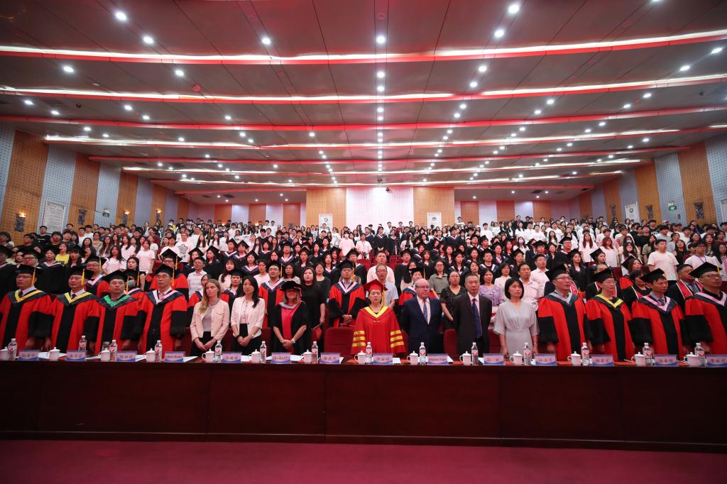 暖场歌曲《bat365在线中国官网登录入口校歌》及毕业纪念视频《殊途》拉开了毕业典礼的序幕,勾起了毕业生难忘的回忆,表达了对母校的浓浓眷恋与对师友的依依不舍,展现了中外合作办学项目学子在脚踏实地中磨练成长、在激流勇进中蜕变成熟的精神风貌。
