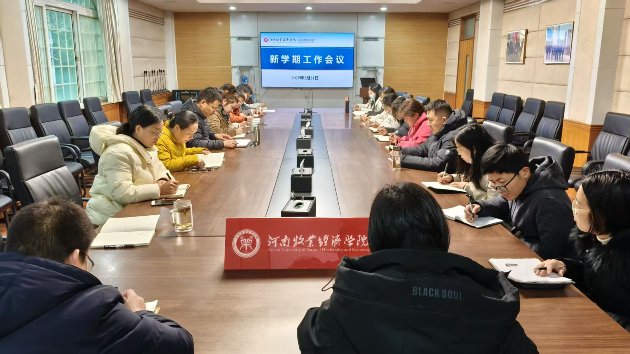胡晓波传达了近期学校相关会议精神,简要回顾了学校、学院在2024年取得的主要成绩,并对新学期工作进行安排部署。他指出,2025年是“十四五”规划收官和 “十五五”规划的谋划之年,也是加快推进高质量中外合作办学教育体系建设的奋进之年,做好今年的工作极其重要;全体教职工要提高认识,收心归位,超前谋划,主动作为,全力做好开学初各项工作,为新学期开好局,起好步。他强调,一要提高一个认识。当前,学校正处于改革转型发展的关键时期,全体教师要聚焦“国之大者”“省之大计”“校之要务”,全面贯彻党的二十大和二十届三中全会精神,全面贯彻党的教育方针,主动融入“四高四争先”,紧紧围绕校党委工作部署,以高度的责任感和使命感,善谋善为紧抓高质量发展新机遇。二要强化三项工作。全体教职工要坚持学无止境,加强政治业务学习;要坚持责无旁贷,投身学校事业发展;要行无终点,不断提高工作标准;切实以主人翁意识,不断强化责任担当,抓好各项工作落实。三要注重全面发展。全体教职工要守牢纪律底线,绷紧廉洁之弦;要坚守为党育人、为国育才的初心,不断涵养高尚师德;要树立与时俱进的教育观念,不断丰富知识储备;要不断增强创新和实践能力,提高教学和育人水平,为学生成长成才贡献自己的力量。