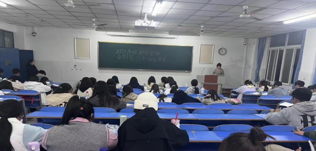 会议中,崔老师首先向参会学生详细讲解了国家助学贷款合同的签订流程、签订内容及注意事项,提醒同学们要仔细核对合同上的关键信息。其次,向同学们解读了国家助学贷款的各项政策与学生还款的流程等相关内容并将签订完成的合同与承诺书进行收回、整理。最后,崔老师强调了诚信贷款的重要性,希望同学们感恩助学、诚信贷款、严格遵守国家规定,认真履行国家合约,按时还款,诚信做人。