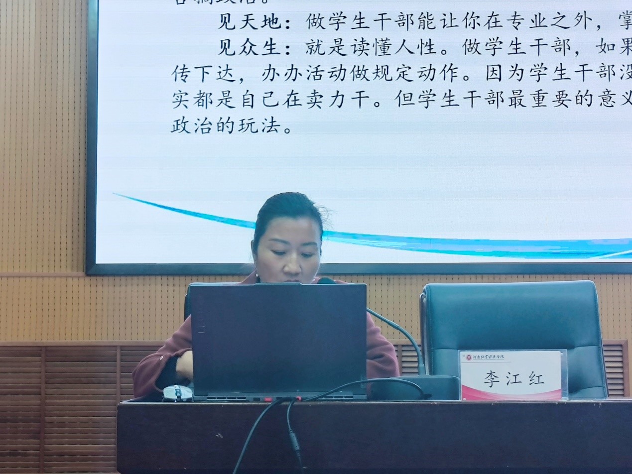 2023年11月20日,bat365“青马工程”大学生骨干培训班暨学生干部素质能力提升培训班第一讲——《学生干部的学习与发展规划》专题报告在学术报告厅举行。本次报告由院党委副书记李江红担任主讲。
