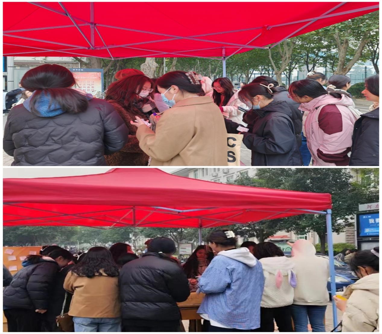 本次活动主要分为两个环节,一是将自己想说的话写在便利贴上直接投放于信箱内;二是可随机抽取信箱内一名同学的便利贴,阅读或分享后再将自己的便利贴投入信箱内。活动一经发布,便受到了同学们的热烈关注。虽然天气寒冷,仍旧无法阻挡同学们的热情参与,帐篷周围都充斥着同学们灿烂的笑容。活动开展过程中,同学们在抽取其他同学的便签时满怀期待,会在阅读他人想法的时候产生共情,会在投放自己便签时得到一种释放......大家一起分享着快乐,分担着忧愁。