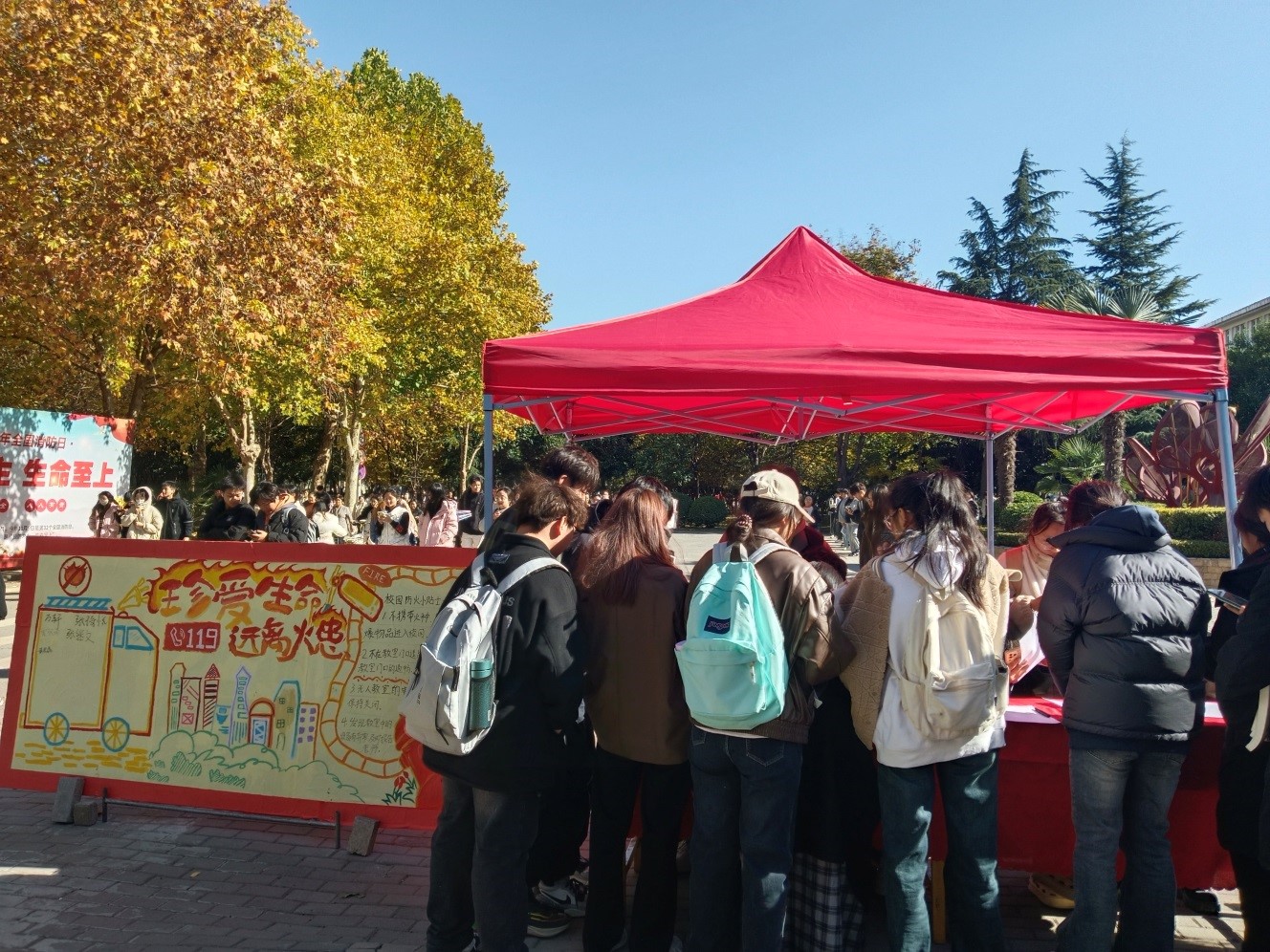为提高学生们防火安全意识,增强自我保护能力,营造美好安全和谐稳定的校园生活,bat365在线中国官网登录入口于11 月 23 日中午在红色花蕊处开展了冬日防火宣传和知识竞赛活动。