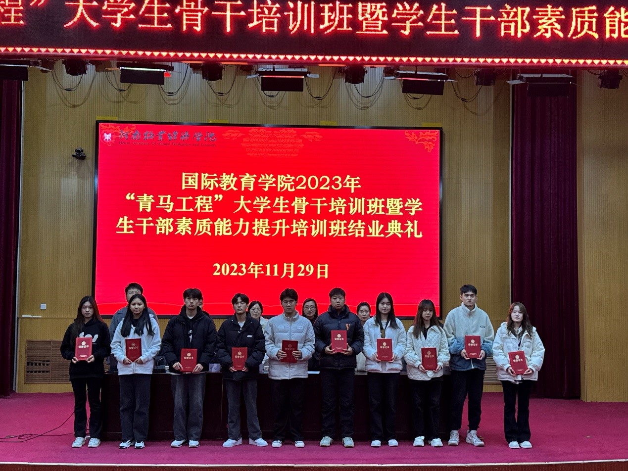 11月29日,bat365在线中国官网登录入口在学术报告厅举行了“bat365在线中国官网登录入口2023年 “青马工程”大学生骨干培训班暨学生干部素质能力提升培训班结业典礼。院党委副书记李江红、院团委书记张丽、院团委副书记侯丁琳、何季霖,学生党支部书记滑斌和侯思琦以及本期培训班全体学员参加了结业典礼,典礼由何季霖主持。