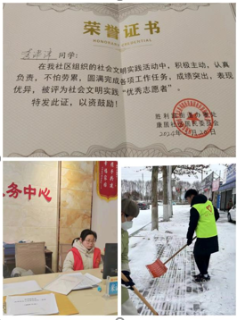 寒假期间,李津津同学在学校团委和当地的华龙区共青团号召下,报名参加返家乡社会实践。