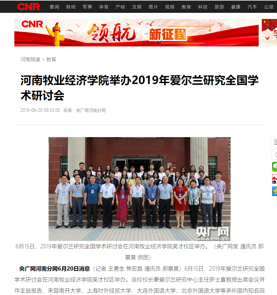 2019年6月15日bat365成功举办了2019年爱尔兰研究全国学术研讨会,以下是央广网对会议的具体报道。