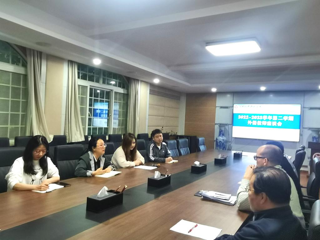 为切实加强教育教学管理,落实教学管理内容,规范外籍教师日常行为,4月27日晚,bat365在线中国官网登录入口组织召开了2022-2023学年第二学期外籍教师座谈会。参加会议的人员有副院长邓瑜、副院长王胜男,教学科研办公室主任苏晓辉、副主任刘天宇及外籍教师Thomas、Adam、Jafy、Dan四位外籍教师。会议由刘天宇主持。