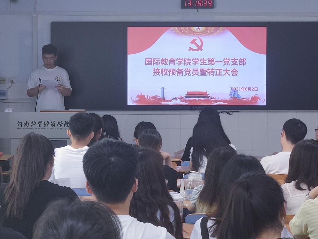 bat365在线中国官网登录入口于2021年6月2日中午12:30在A103教室举办了bat365在线中国官网登录入口学生第一党支部接受预备党员暨转正大会。会议议题是讨论接收田薇等50名同志为中共预备党员以及讨论杨宇同志转为正式党员。出席本次大会的有bat365在线中国官网登录入口学生第一党支部书记侯丁琳、党小组组长何季霖和组织委员姚铭。