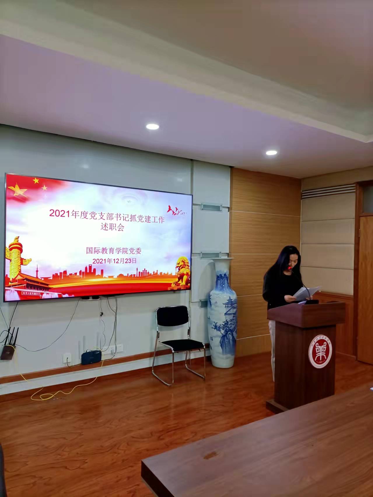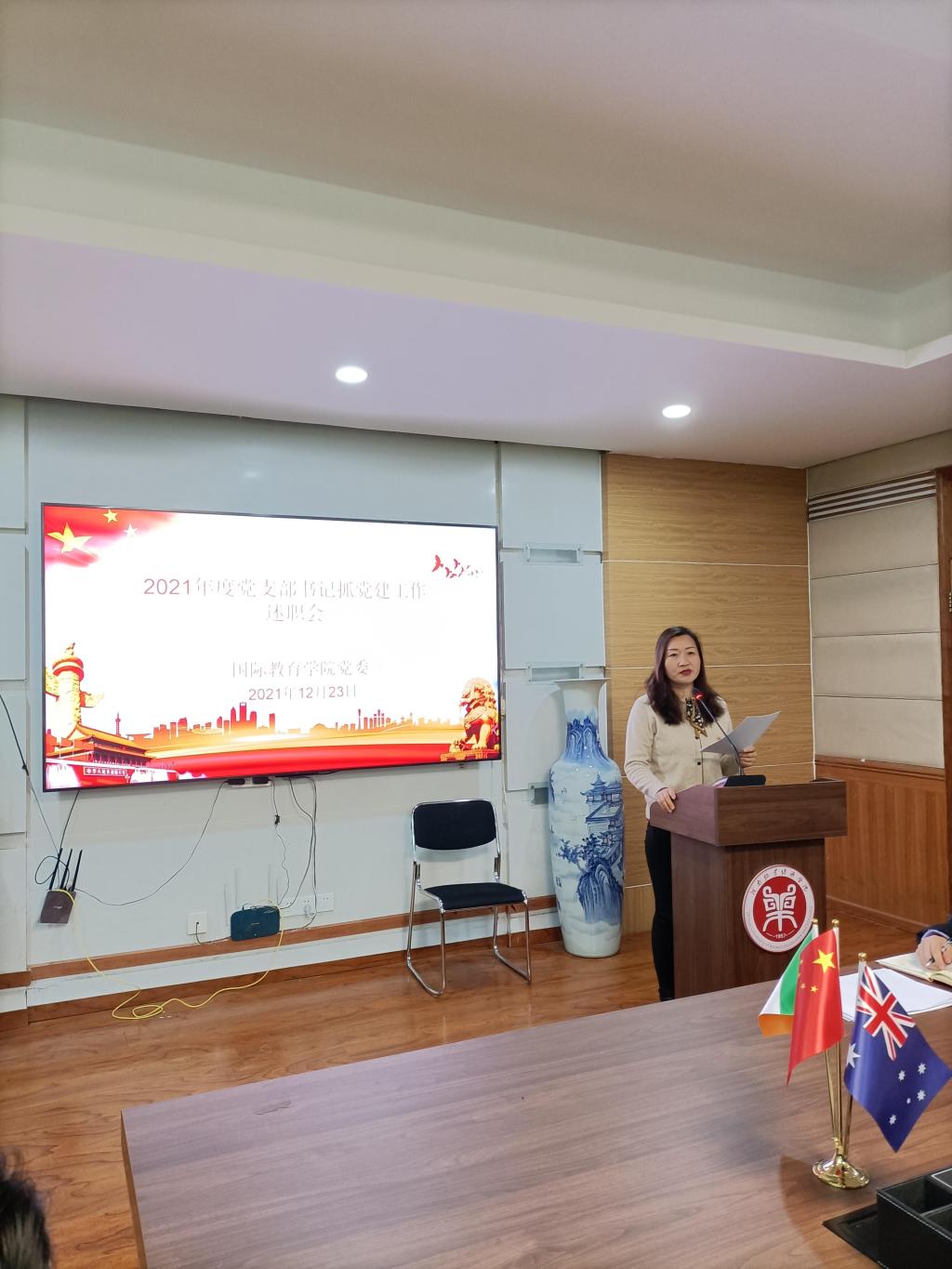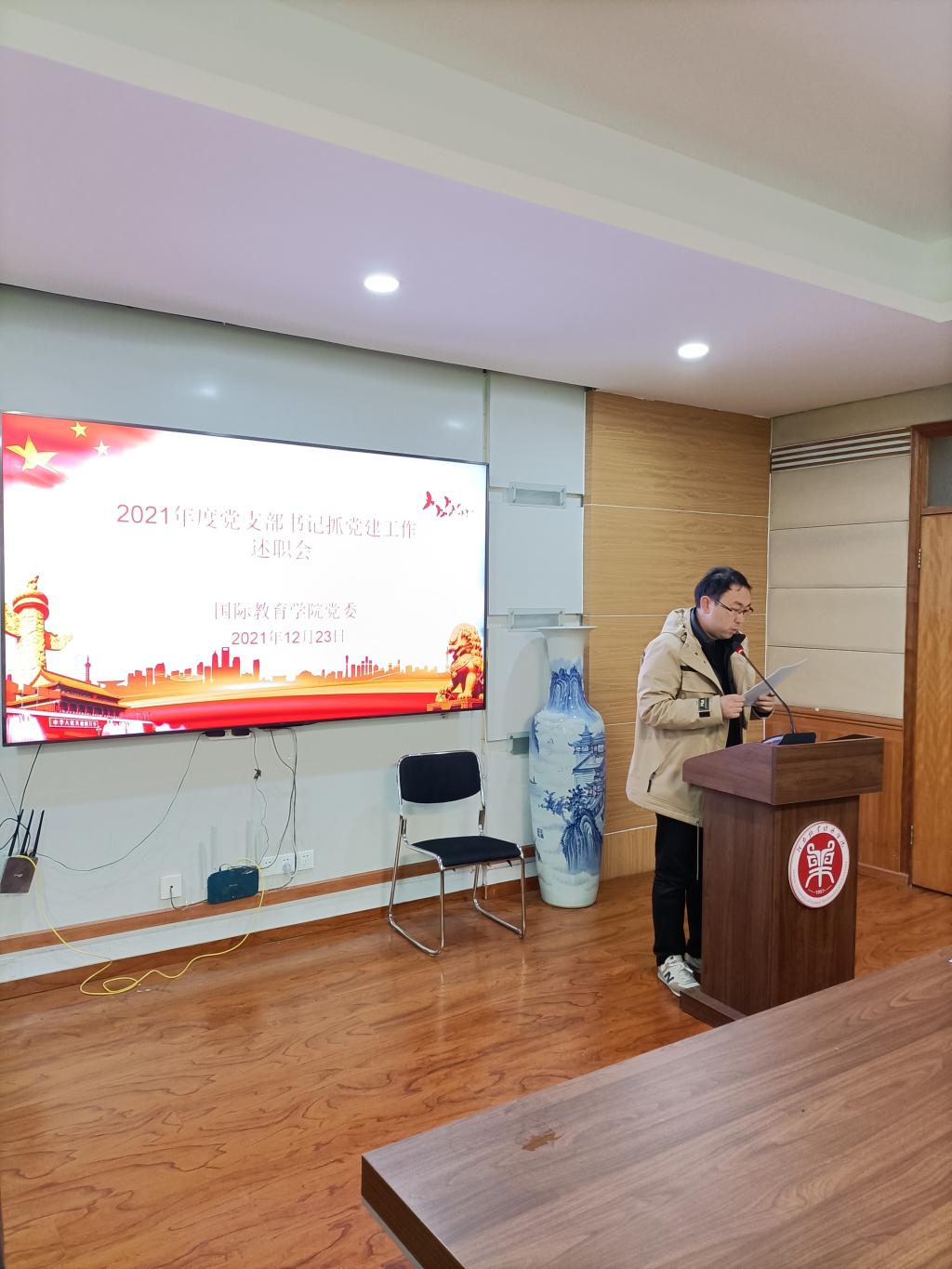 12月23日上午,bat365在线中国官网登录入口在教学办公楼113会议室召开2021年度党支部书记抓党建工作述职评议会。学院全体教工党员、部分学生党员代表参加会议。会议由院党委书记贾江主持。